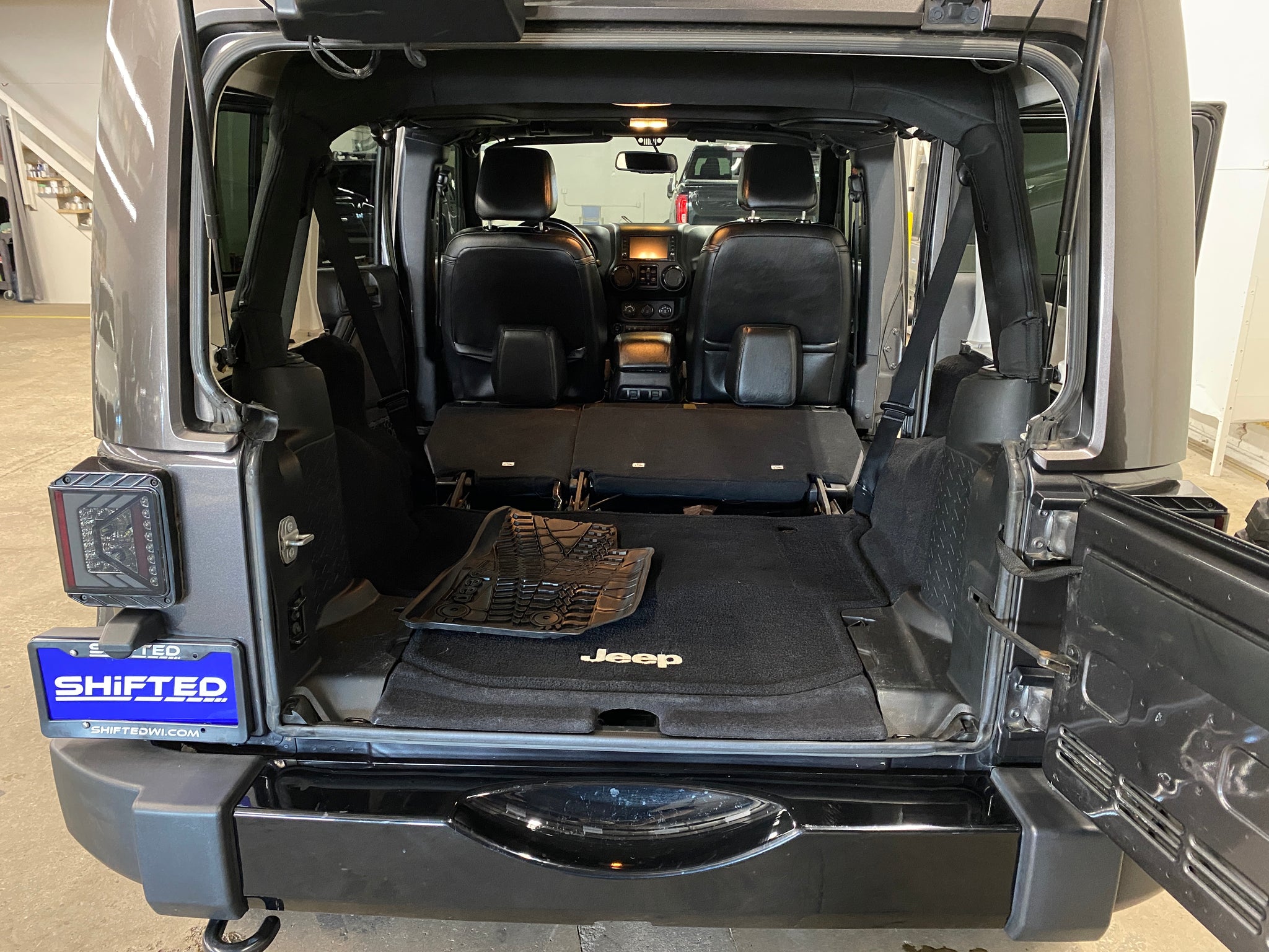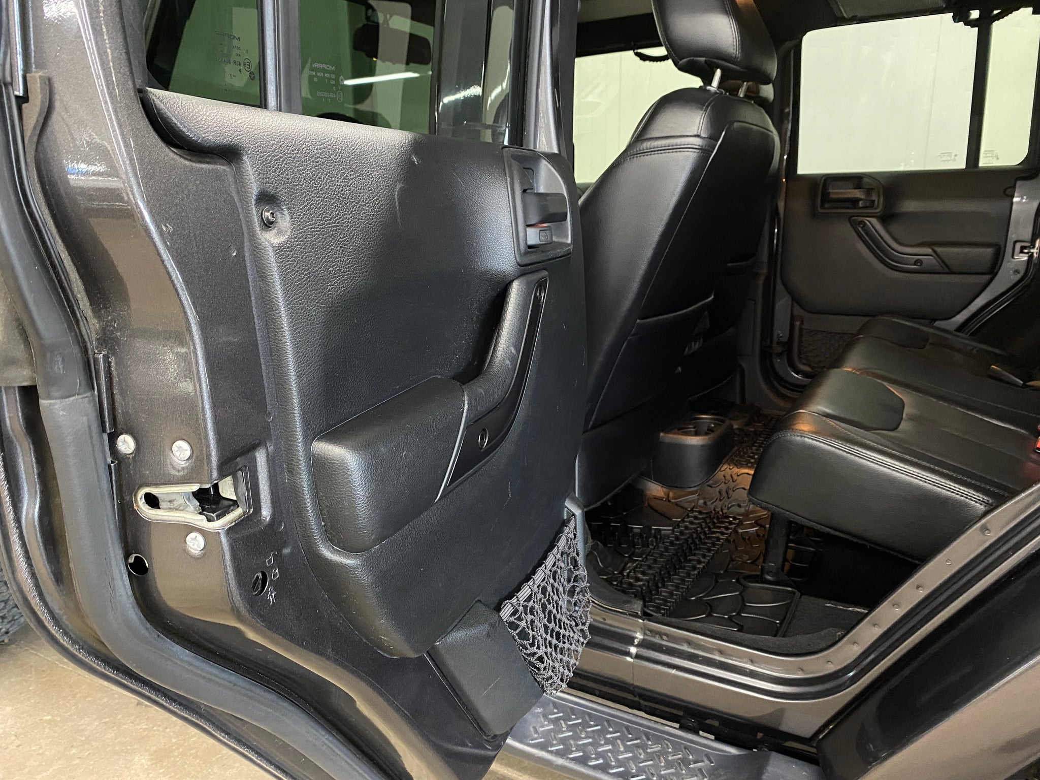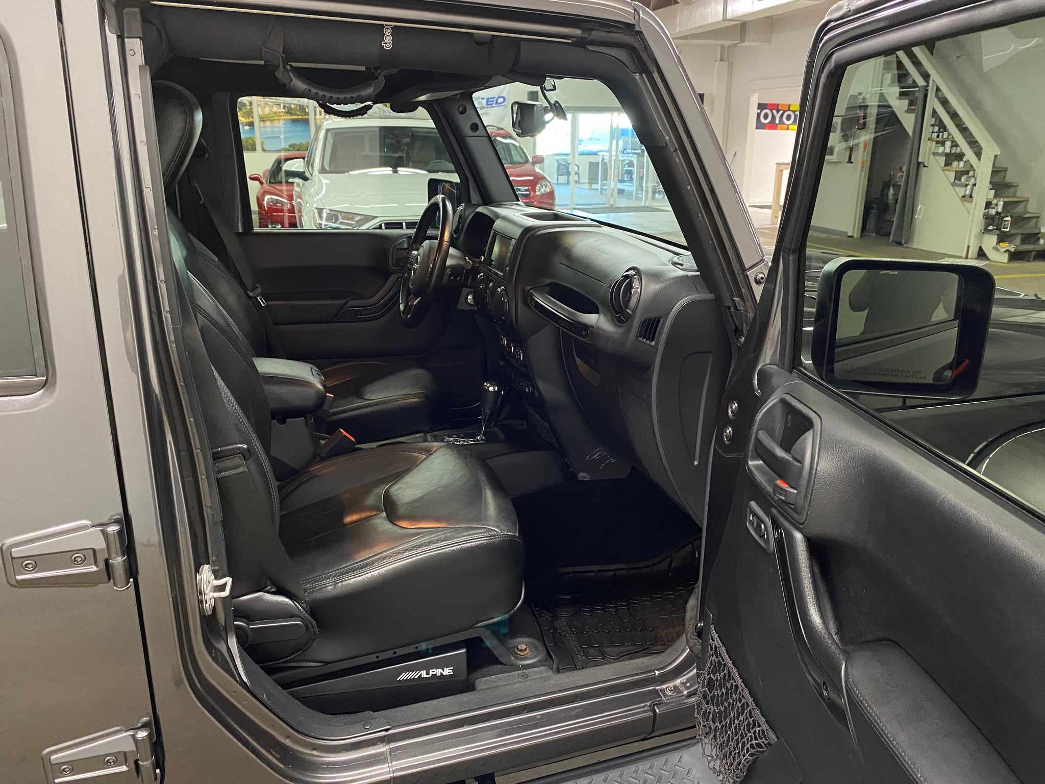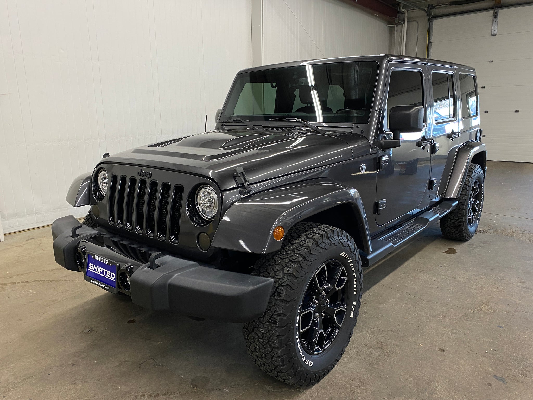 Only one previous owner with extensive documented service records! Granite Crystal Metallic Clearcoat over a black leather interior equipped with a 3.6L V6, automatic transmission, 4WD, heated front seats, color-matched removeable hard top, steering wheel controls, remote start, voice activated calling, cruise control, power windows, mirrors, and doors. Included with sale is one key and Jeep tool kit. An inspection and service was just completed. Please contact us for additional information and to schedule a test drive. Thank you!
