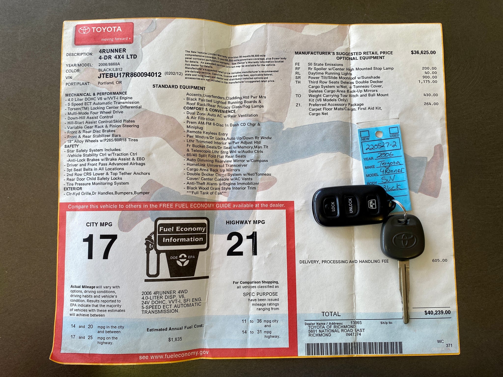 VIN: JTEBU17R860094012 Miles: 283,967